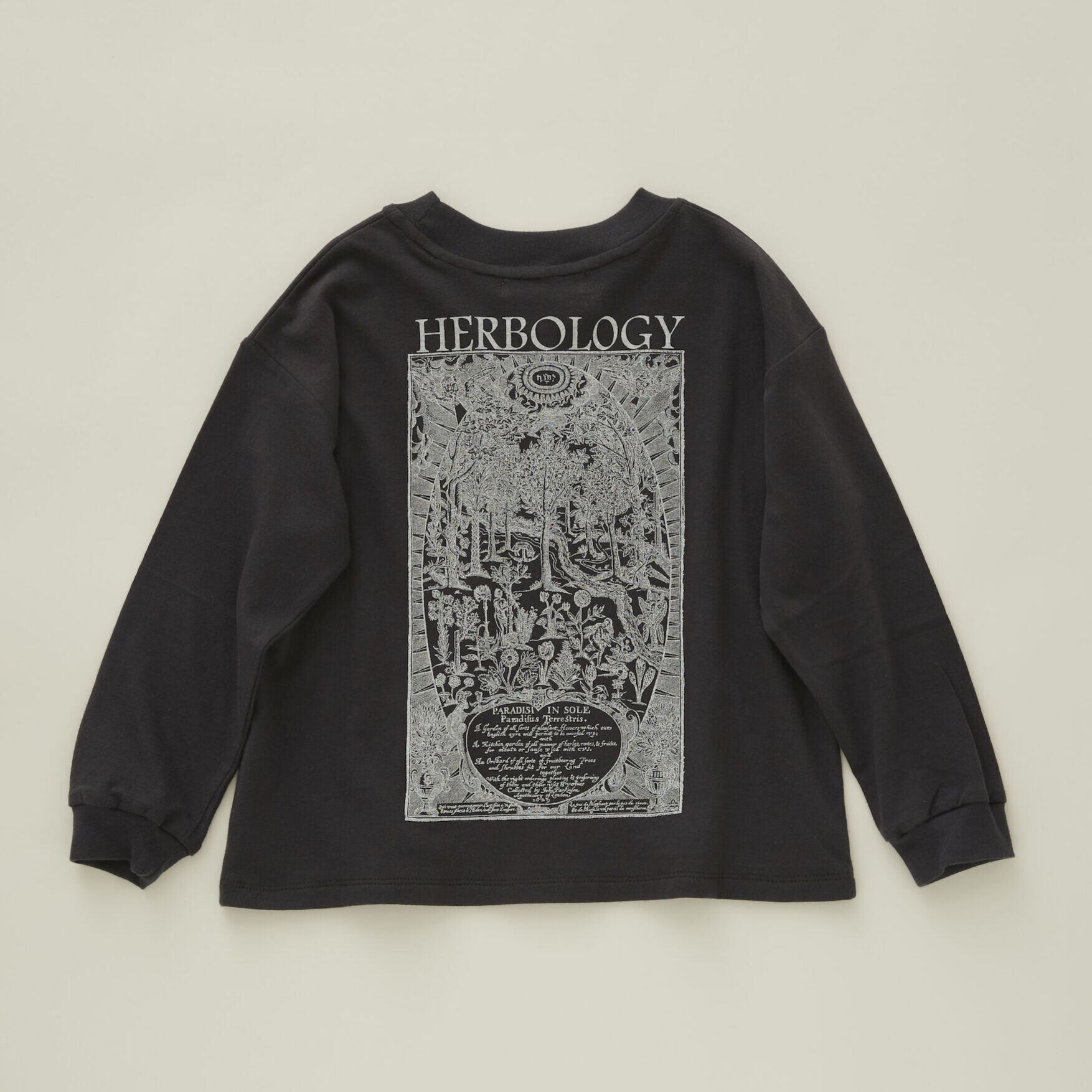 古い洋書から見つけた植物写本の図案を背中にプリントした長袖Tee。