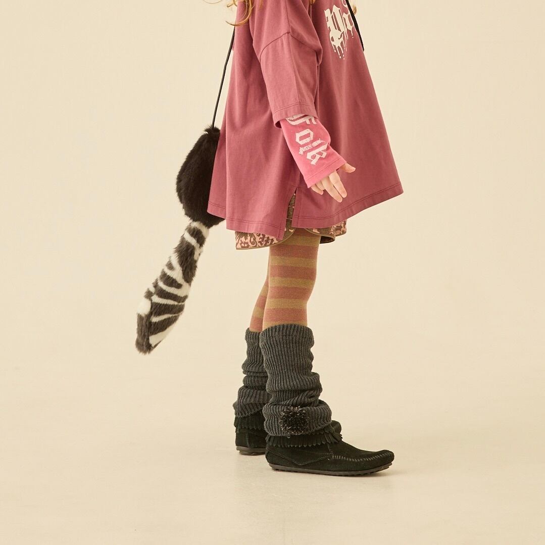 コットンアクリル糸でゆるくリブ編みしたルーズなポンポン付き