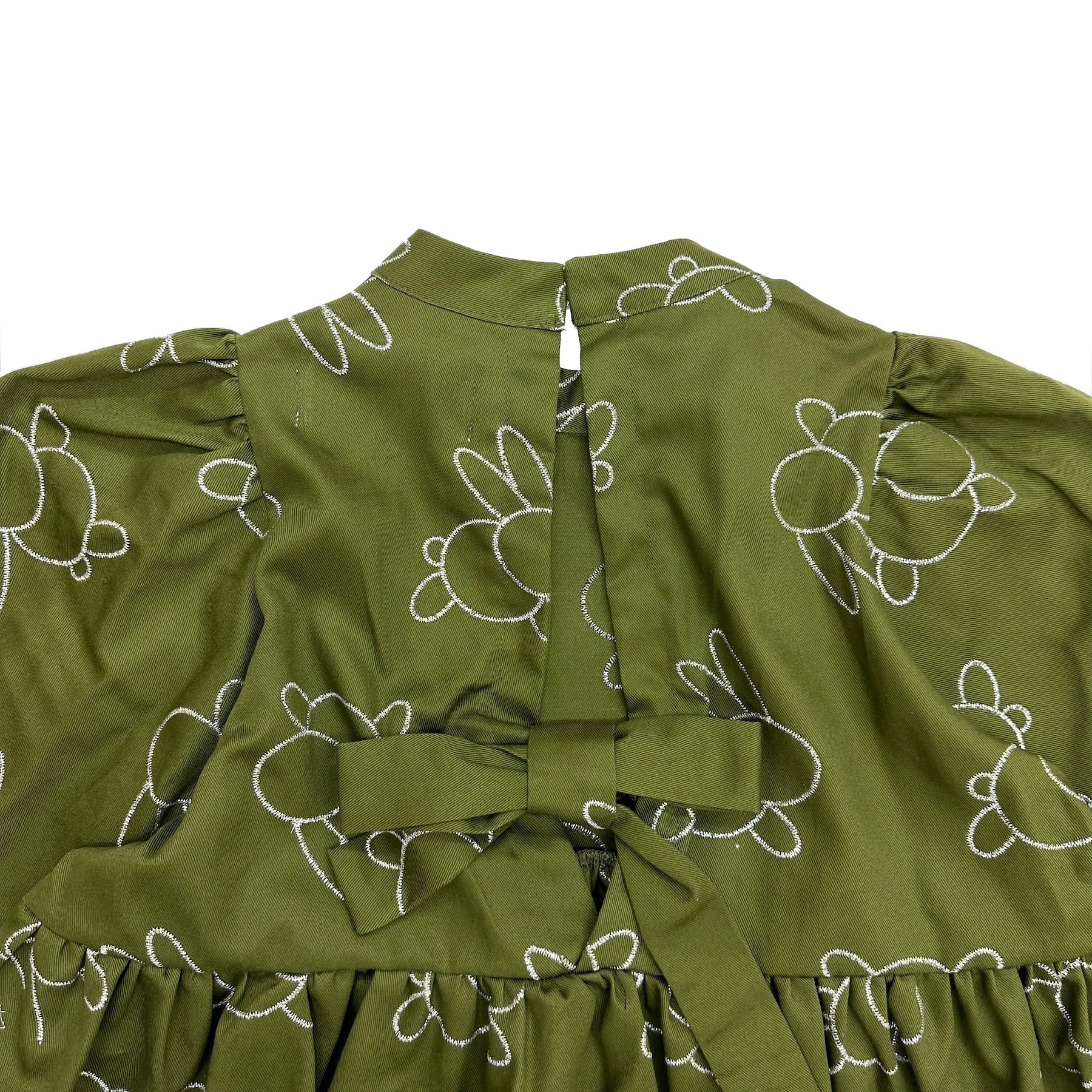 ・うさぎ柄の総刺繍(シルバー糸)オリジナルファブリック